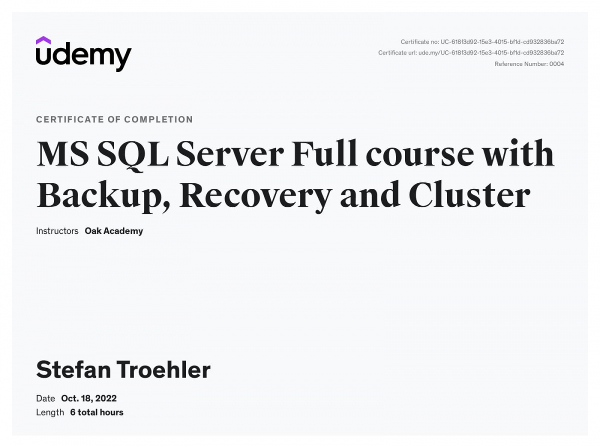 MS SQL Server Full course with Backup, Recovery and Cluster course.