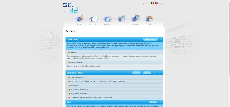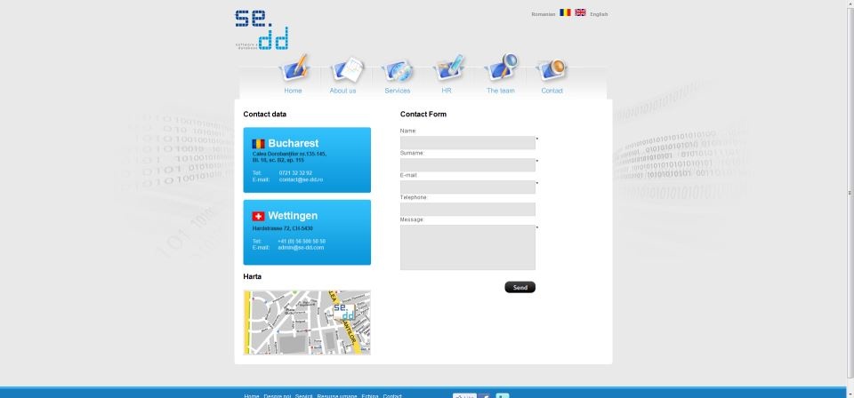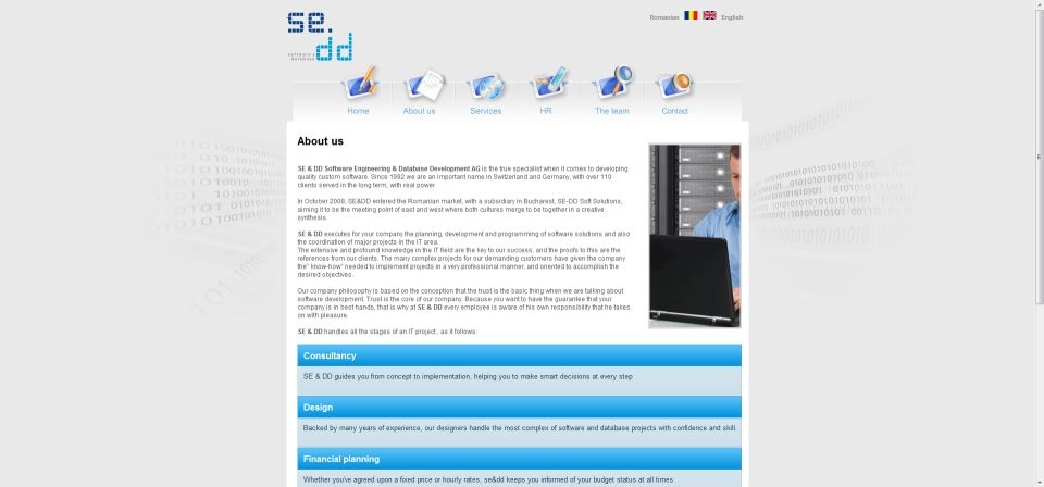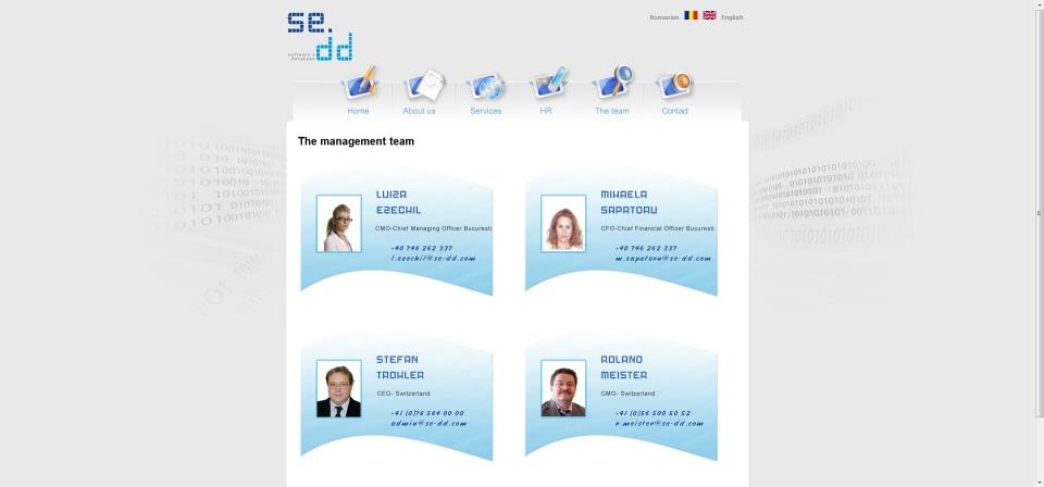Description: Website for the Swiss computer science company called se&dd SRL in Feldbrunnen, Switzerland, the site is for the subsidiary of the same name in Bucharest, Romania.